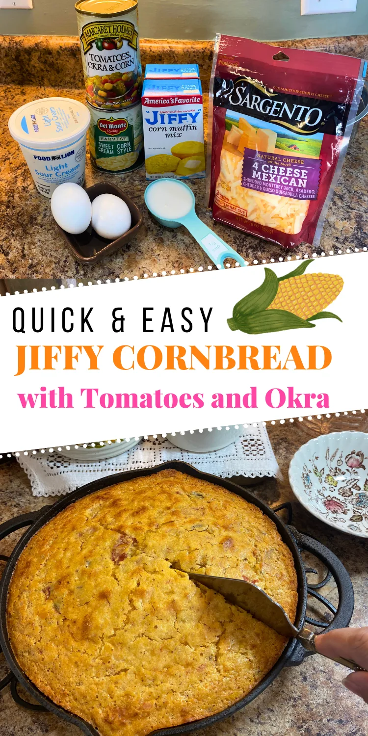 Jiffy Cornbread Casserole with Tomatoes and Okra